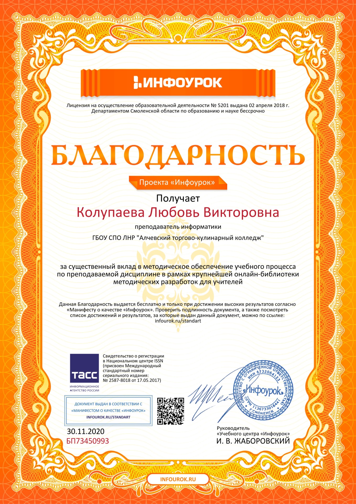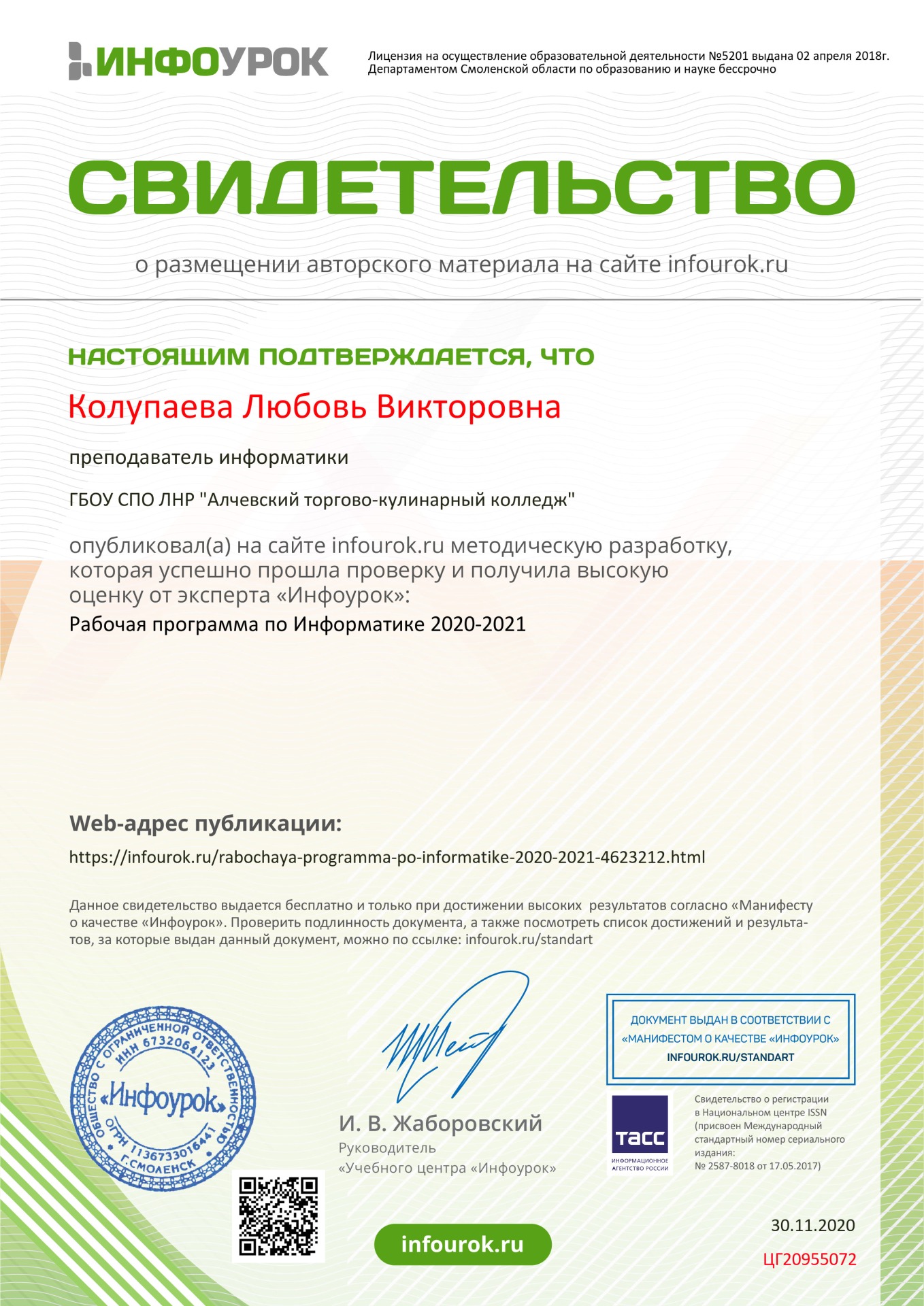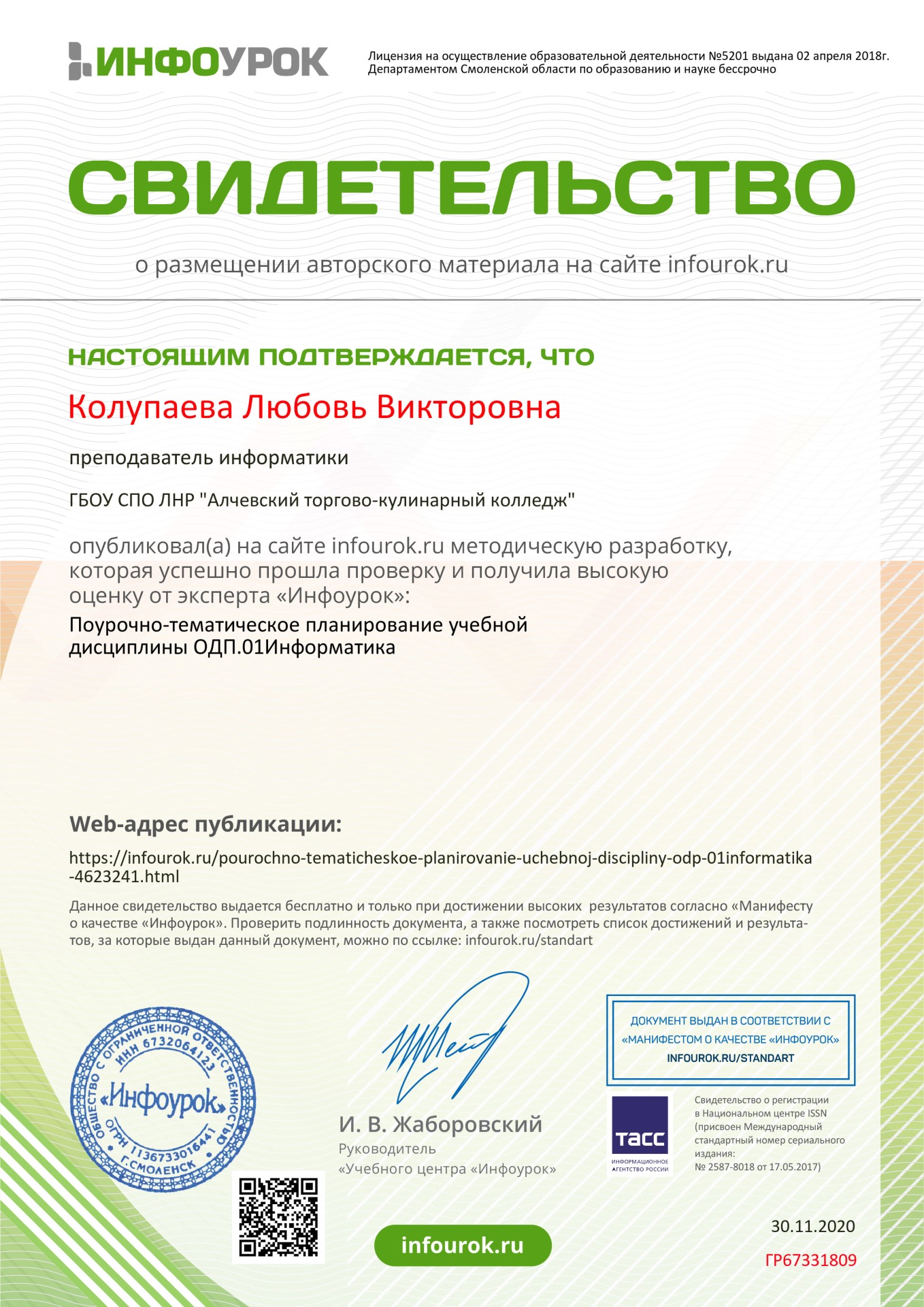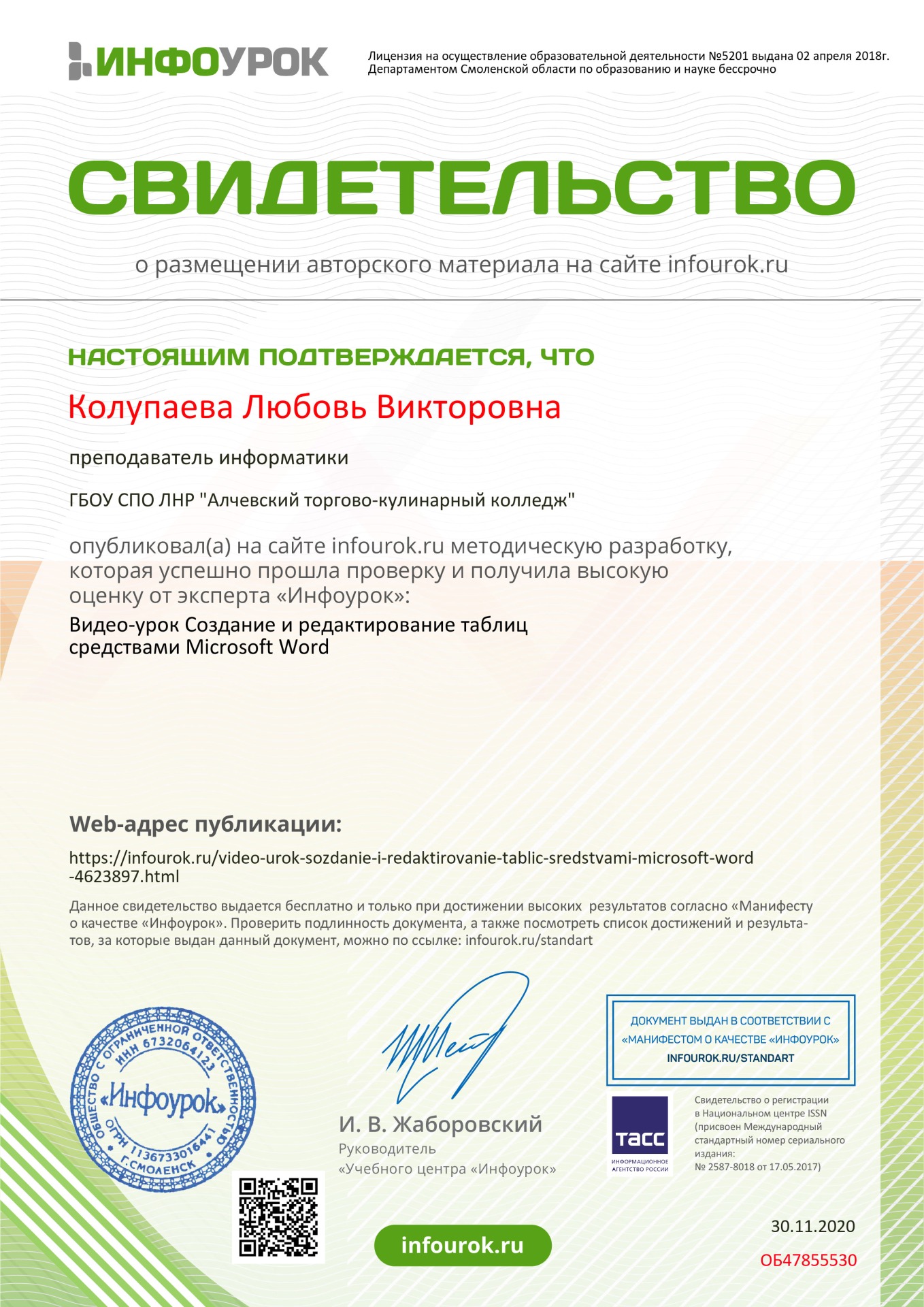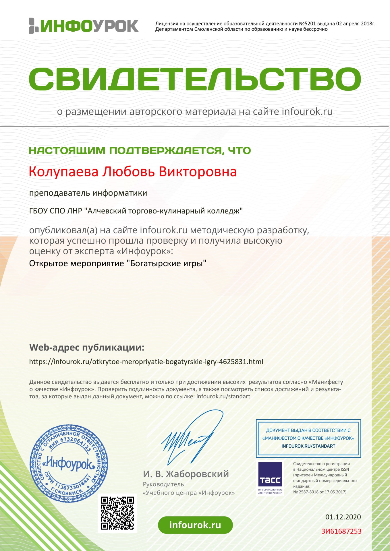 Колупаевой Любови Викторовны