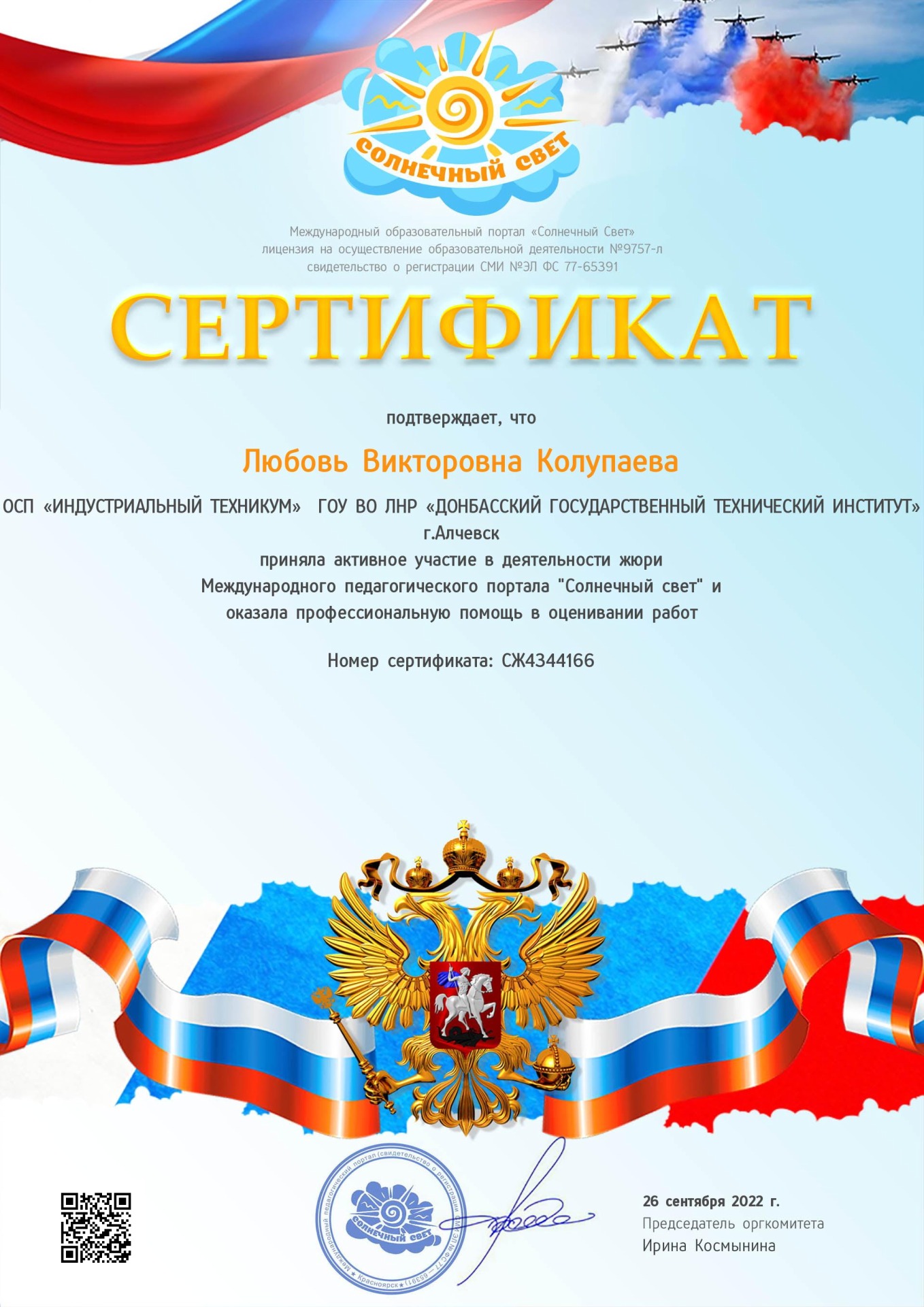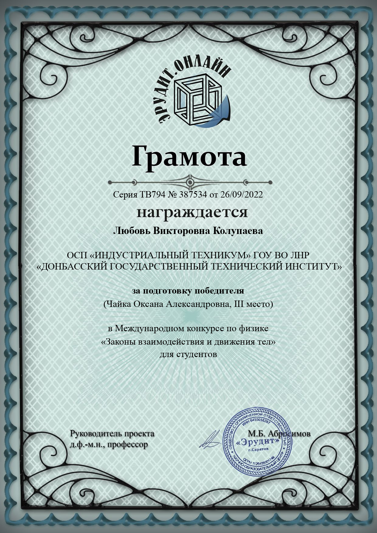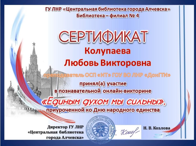 Колупаевой Любови Викторовны