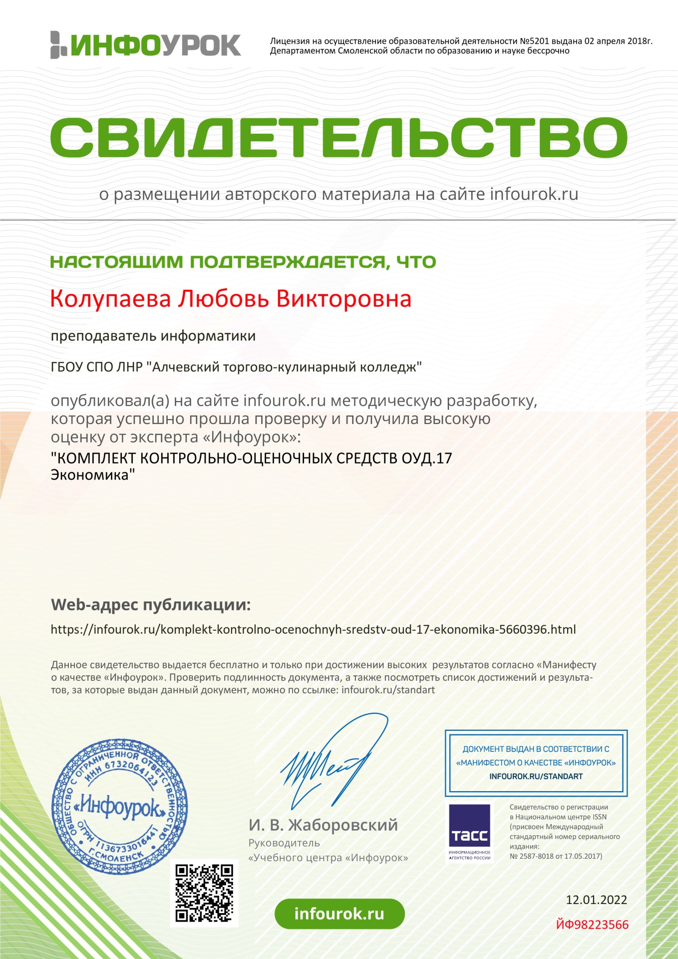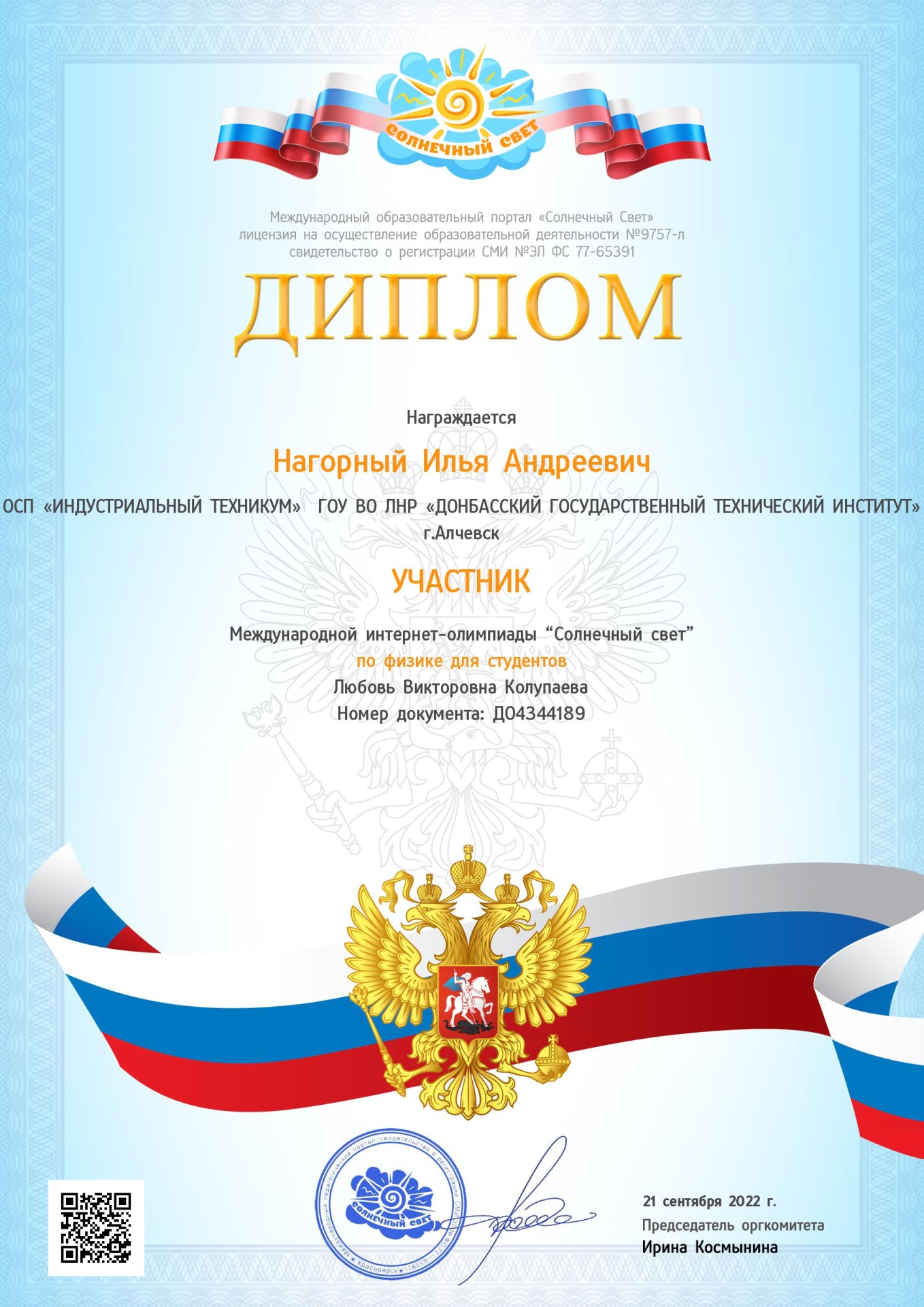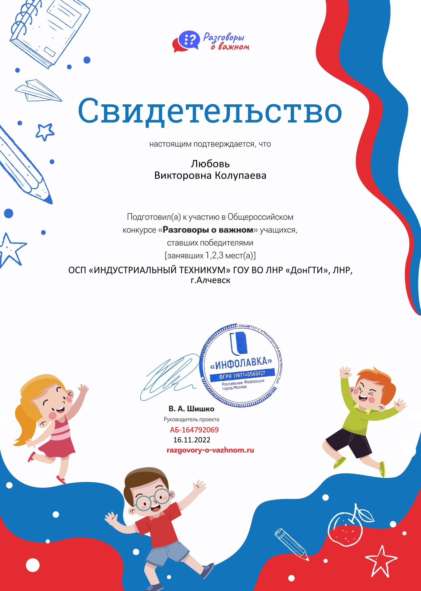 Колупаевой Любови Викторовны